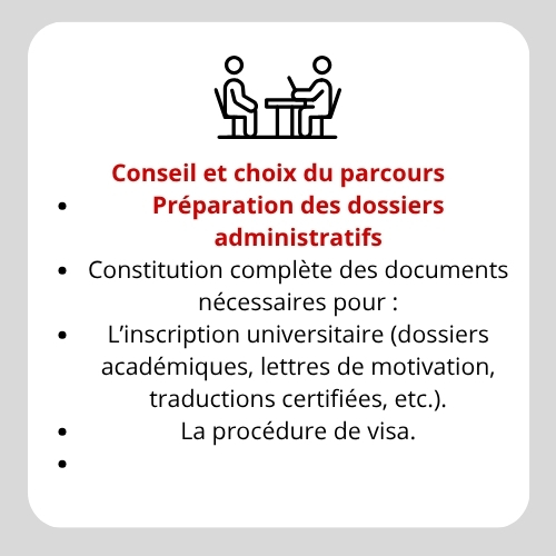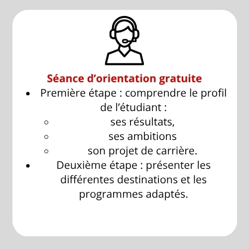La réussite académique de chaque étudiant est au cœur de notre mission, guidée par une vision d’orientation sur mesure, à la fois inspirante et fiable. Nos conseiller(e)s vous guident à chaque étape clé de votre parcours :