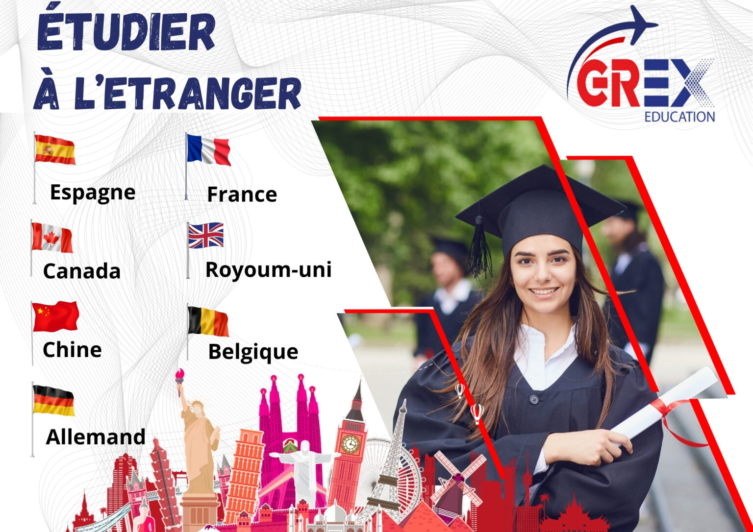 Que ce soit en France, en Espagne, en Belgique, en Allemagne, au Canada, en Italie, en Chine ou en Royaume-Uni, … nos consultant(e)s offre un accompagnement personnalisé et fiable à chaque étudiant.